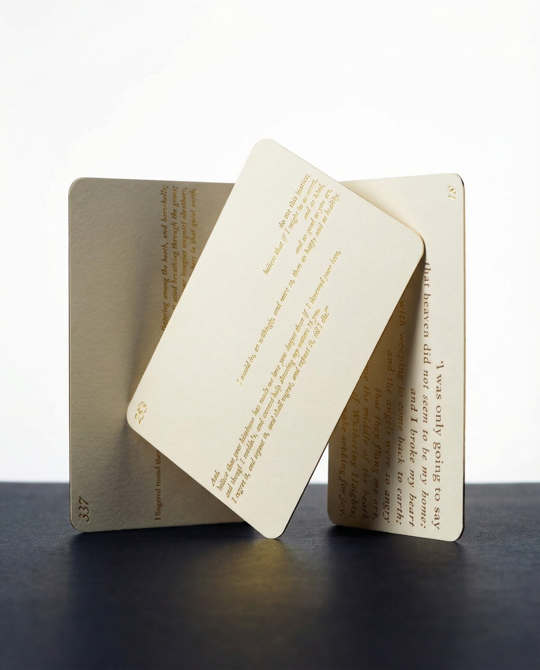 Our collection of 27 distinct, exquisitely designed luxury postcards, each a portal into the novel's most transcendent moments, housed in a matte-black leatherette-print treasury case embossed in gold script, evoking the storm-lit elegance of Brontë’s world and house the Luminous Edition as a collectible literary artifact.